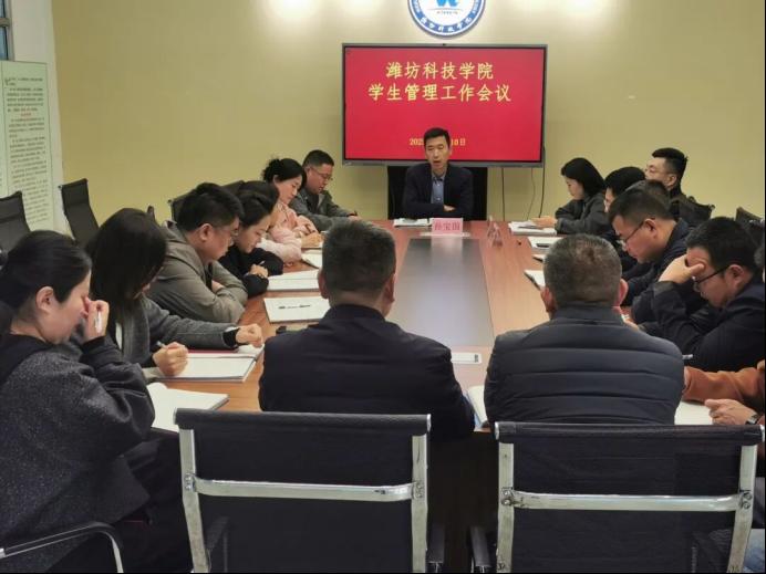 为进一步做好学生管理工作,压实安全工作责任,11月10日,学工处组织召开学生管理工作会议。校党委委员、学工处处长孙宝国主持会议并讲话。团委书记孙一力、安保处处长夏玉涛、学工处各中心负责人及各二级学院书记参加会议。