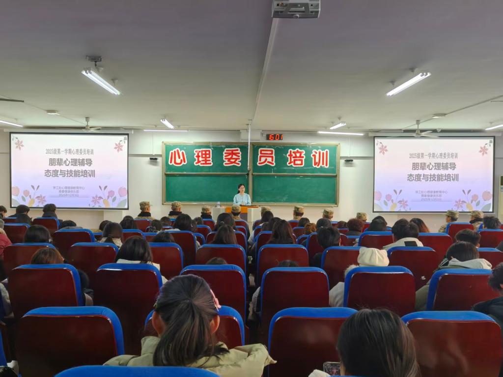 为全面提升班级心理委员专业素养,充分发挥朋辈心理互助的桥梁作用,12月3日,学工处心理健康教育中心对2025级全体心理委员开展朋辈心理辅导培训,由李艳欣老师主讲。