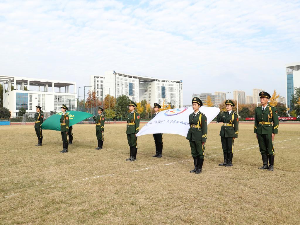 伴随着激昂的旋律,2025年山东省“省长杯”大学生足球超级联赛会旗、潍坊科技学院校旗、山东科技职业学院校旗依次入场,双方队员与裁判员精神抖擞列队亮相。仪式上,付乐启校长为比赛开球,为这场盛大的校园足球盛会按下“启动键”。